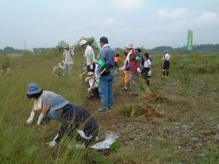 鬼怒川の河川敷で、「シナダレスズメガヤ」の駆除作業を行いました。参加者は、さくら市民、栃木第20団ガールスカウトのみなさん、国土交通省氏家出張所、リバーフロント、東京大学、「うじいえ 自然に親しむ会」メンバー等で合計80名が、さわやかな汗を流しました。除草されたミヤコグサ群生地には、さっそく<シルビアシジミのメス>が飛来し、参加者の多くは、はじめて見るシルビアシジミの突然の訪問に大感激でした。