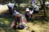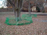 国蝶のオオムラサキやゴマダラチョウの幼虫を保護するために、エノキの根元にゴルフネットを張って、落葉が北風で飛ばされないよう囲いました。