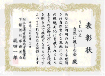 本会が河川愛護団体として、国土交通省より表彰を受けました。当日は国土交通省関東地方整備局下館河川事務所で、成田一郎所長より表彰状と記念品をいただきました。
