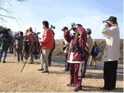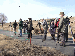 寒い日でしたが30名の参加があり、シメ、ベニマシコ、ウソなどのほかにオオハクチョウ一家の移動が観察できました。