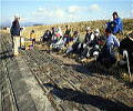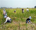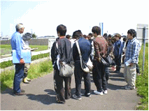 氏家大橋近くの堤防の上で 「鬼怒川について」の説明を国土交通省氏家出張所の齋藤哲夫所長から話していただいた後、氏家大橋へ移動して「鬼怒川の流れや治水について」宇都宮大学高橋俊守先生の説明がありました。その後、東京大学カワラノギク実験サイトへ移動して本会の松田喬副会長から、「鬼怒川河川敷の昆虫や植物の写真」を見ながら解説を受けました。最後に、加藤啓三会長から「シナダレスズメガヤについて」実物を見て抜き方を聞き、河川敷に生えているシナダレスズメガヤ抜き取り作業に取り組みました。
