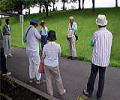 鬼怒川運動場(サッカー場)西側河川敷に、雨模様の中24名が集まりました。