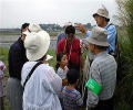 会場は、東大カワラノギク実験地とさくら市ミュージアム民家広場 参加者59名 講師 石井潤(東京大学大学院)・一瀬克久(東京大学大学院)・田代俊夫本会顧問・松田喬副会長 はじめにカワラノギクの説明を受け、つぎに、河川敷の昆虫について写真を見ながら説明を受けました。その後、シナダレスズメガヤを抜き取り、本番の観察会に入りました。本日の観察会でじっくり観察したものは、渡辺剛(本会理事)さんが描いた「ぬり絵」に色を付けることを宿題に持ち帰ることにしました。