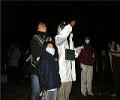 押上小学校校庭に13名が集まりました。講師は、菊地庸夫さん、小原宏明さん、古沢庄三郎さんにお願いしました。 1月30日が雨で中止になったものが関係者の努力で復活しました。冷たい北風が吹くなか、目当ての金星(風が強く画像が安定せず残念でした)ははっきり見えず残念でしたが、満月に近い月やスバルは、きれいに見えました。そして、古沢さんより、冬の大三角や冬の六角形(ダイヤモンド)など星座の解説を受けました。最後に、デジカメや携帯で写真撮影しました。