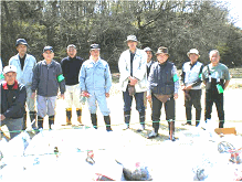 おだやかな花見日和、増水中の草川の清掃が実施されました。本会会員17名、小学生2名、さくら市役場職員12名の計31名が集まり、草川周辺の燃えるゴミや燃えない空き缶などのゴミを拾いました。その量は、小型トラック一台分になりました。今回で5回目となるゴミ回収、きれいになりました。