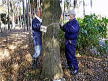 今年「元気な森づくり」事業として取り組んでいる。樹木名のプレート(白地に黒文字)を整理番号137番「ヤマボウシ」(ミズキ科)以降45枚のネームプレートを、さわやかな天気の元、取り付けました。残り15枚は、後日取り付ける予定です。参加者3名でした。