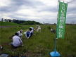 鬼怒川河川敷にある「東京大学カワラノギク実験地」に東京大学・国土交通省氏家出張所・さくら市・さくら市ガールスカウト・本会の5団体のほか一般参加者など43名が集まり、新緑のきれいな羽黒山を眺めながら、シナダレスズメガヤを抜き取りました。その後にカワラノギクの種を播きました。昨年播いたものは5~6センチメートル育っていました。