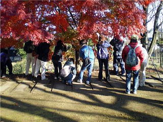 講師の松田喬副会長からカメラの使い方やレンズの話を聞きながら、勝山城本丸跡から鬼怒川河川敷まで、コニシキソウ、ゲンノショウコなど20種類の野草を撮影しました。
