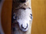 ミュージアム体験学習室で冬の植物観察会について講師の田代俊夫先生から説明を受けた後、雪が残る勝山の森へ出て、ルーペを使って冬芽と葉痕(葉が落ちた痕)を観察しました。葉痕が動物の顔のようでおもしろかったです。