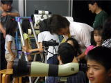 氏家小学校校庭での実施は雲が多く中止して、氏家小学校図工室でビデオプロジェクターの放映になりました。講師は、菊地庸夫理事、小原宏明(星とロマンを語る会)さん、今村剛史(星ふる学校くまの木)さんの3名にお願いしました。