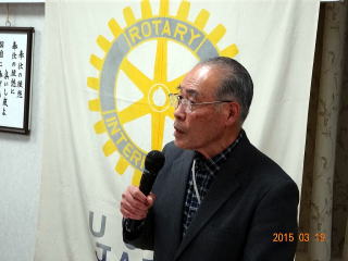 さくら市氏家のホテル清水荘で氏家ロータリークラブの3月定例会が開かれ、加藤会長が「鬼怒川の自然環境と平成26年度の活動」と題して卓話をしました。はじめに昨年の10月12日に初参加した「シナダレスズメガヤ抜き取り作業」のお礼から、活動の成果、現在の鬼怒川河川敷、自然環境への取り組みなどのことから、行事の写真16枚を説明しました。