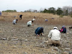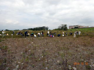さくら市運動公園サッカー場西側河川敷で実施しました。 風もなく穏やかな作業日和でした。はじめに加藤会長より抜き取り作業について、次に松田副会長より抜き取る草について説明を受けて、作業に取りかかりました。参加者はさくら市ガールスカウト、さくら市立氏家中学校、宇都宮市立旭中学校、栃木県立さくら清修高等学校、栃木県立宇都宮白楊高等学校などと、さくら市教育委員会生涯教育課が募集したボランティア活動の人たちと国土交通省や三井住友信託銀行宇都宮支店や栃木モーターパラグライダーなど若い人が多く活気がありました。参加者は、さくら市、宇都宮市、足利市、真岡市、矢板市、高根沢町などから86名もの方々が参加され、参加者数の新記録でした。
