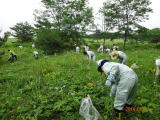 さくら市との共催事業として、さくら市ゆうゆうパークで実施しました。昨年に比べ、いくらかオオキンケイギクが少なくなり、抜き取り作業の効果が出てきているように感じました。本日は「とちぎテレビ」の取材があり、作業の様子を収録していました。