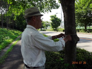 講師を松田喬副会長にお願いして実施し、「日本のセミ、外国のセミについて特徴などの説明を聞きました。今年はセミの抜け殻が少なく心配でしたが、7時30分にやっと、メタセコイヤを登り出す幼虫を見つけました。8時を過ぎるとあちこちで、羽化が始まり、真っ白い「アブラゼミ」を見る事が出来ました。参加者はさくら市の他、宇都宮市、鹿沼市、矢板市、日光市、高根沢町、神奈川県などから64名でした。