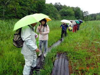 さくら市ミュージアムへの協力事業として実施しました。講師は田代俊夫顧問が務め、小雨降る中「大谷地」だけの観察会でしたが、ウメバチソウ(白)、サワギキョウ(紫)、オグルマ(黄)、キンミズヒキ(黄)ヤマハハコグサ(白)などきれいに咲いていて、41種類の野草が観察出来ました。参加者は17名でした。