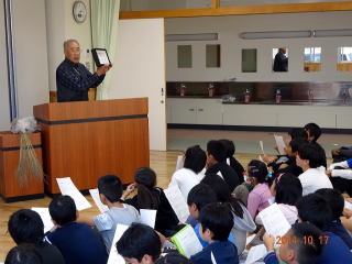 さくら市立氏家小学校(橋本啓二校長)5年生176名の総合的学習に加藤会長が「さくら市の自然環境」と題して授業をしました。