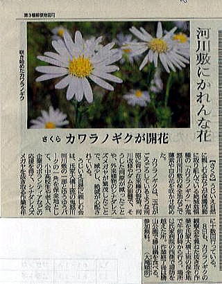 10月7日付の下野新聞に「河川敷にかれんな花」~カワラノギクが開花~として掲載されました。(転載許可済み)
