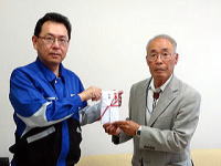 写真 ニッカウヰスキー牧野弘明工場長より手渡された寄付金