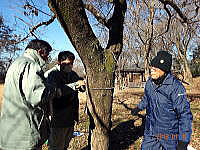 さくら市ミュージアム北側にある「勝山の森」の樹木に、さくら市職員と「樹木名」の札を付けました。