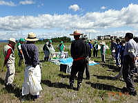 ゆうゆうパークのミヤコグサ第1管理地に集合して管理地の除草をしました。本日は蒲須坂明友会(老人会)の皆さん方が社会貢献事業として参加しました。その他ボランティア活動として、小学生や中学生が参加して管理地の「アレチマツヨイグサ」、「ムカシヨモギ」、「スギナ」、「ヒメジョン」、「クズ」等の除草をしました。