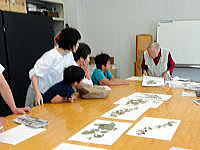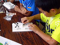 講師は中村和夫顧問、松田喬顧問、高橋伸拓理事、加藤啓三会長にお願いし、午前中小雨のパラ付く中、昆虫採集をした後、体験学習室に戻り昼食をとり、午後はホタルの発光実験をしてから、自分の採集した昆虫の標本作りに取り組みました。