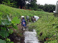 写真 暑い中草取りに励む