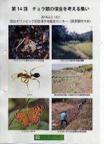 午前中は「ゴマシジミの生態と保全」、午後は「風力発電・太陽光発電による野生生物への影響」と「ヒアリの侵入とその後」、最後に「これからのチョウ類の保全を考える」と題して「ヒョウモンモドキ保全活動の現状と課題」、「各地で起こる緊急事態への対応」、「日本チョウ類保全協会による絶滅危惧種の保全活動」と盛り沢山の提案や活動報告がありました。会合での「アリ」の同定表は今後参考になりそうです。